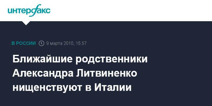 Ближайшие родственники Александра Литвиненко нищенствуют в Италии