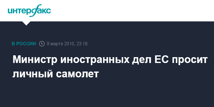 Лондон. 9 марта. ИНТЕРФАКС - Верховный представитель ЕС по иностранным делам и политике безопасности Кэтрин Эштон выступила с предложением предоставить в ее распоряжение личный самолет, так как это позволит ей эффективнее работать, сообщает во вторник британская газета "Таймс".