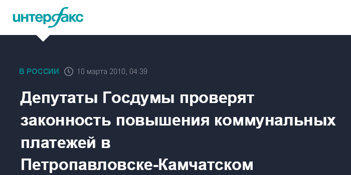 Депутаты Госдумы проверят законность повышения коммунальных платежей в Петропавловске-Камчатском