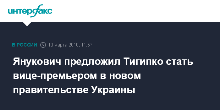 Москва. 10 марта. INTERFAX.RU – Президент Украины Виктор Янукович считает, что лидер партии "Сильная Украина" Сергей Тигипко является наиболее приемлемой кандидатурой на должность вице-премьера в новом правительстве Украины.