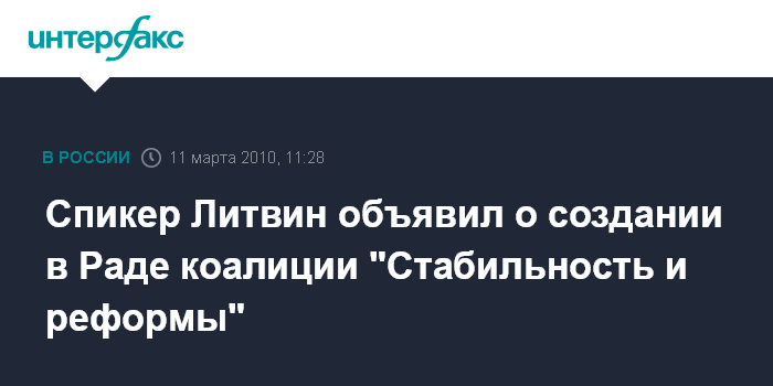 Спикер Литвин объявил о создании в Раде коалиции "Стабильность и реформы"