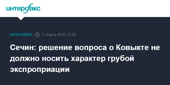 Сечин: решение вопроса о Ковыкте не должно носить характер грубой экспроприации