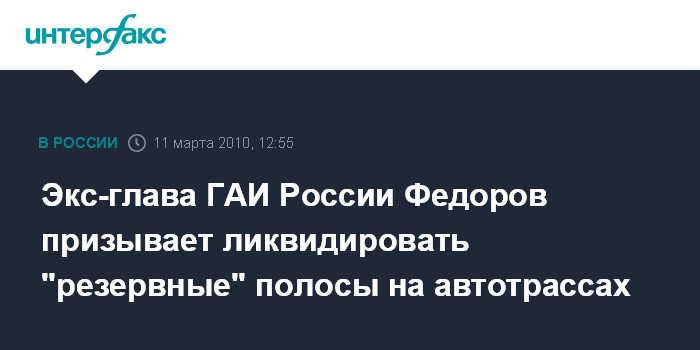 Экс-глава ГАИ России Федоров призывает ликвидировать "резервные" полосы на автотрассах