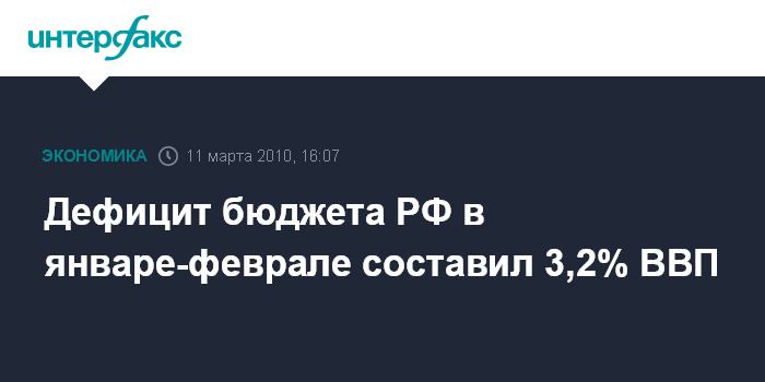 Дефицит бюджета РФ в январе-феврале составил 3,2% ВВП