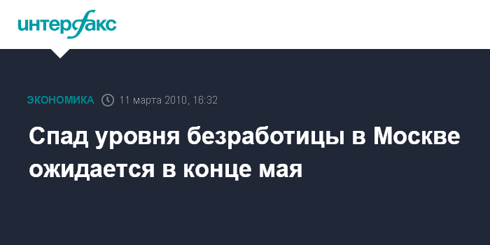 Москва. 11 марта. IFX-NEWS - Медленный рост уровня безработицы в Москве будет сохраняться до второй половины мая, сообщил журналистам в четверг руководитель столичного департамента труда и занятости населения Олег Нетеребский. Потом, подчеркнул он, ожидается, что пойдет медленный спад.