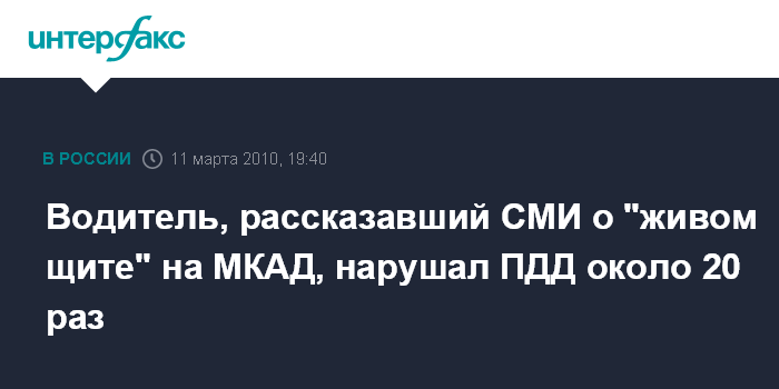 Москва. 11 марта. INTERFAX.RU - Водитель Станислав Сутягин, один из участников так называемого "живого щита" на МКАДе, чей автомобиль был поврежден, неоднократно нарушал ПДД.