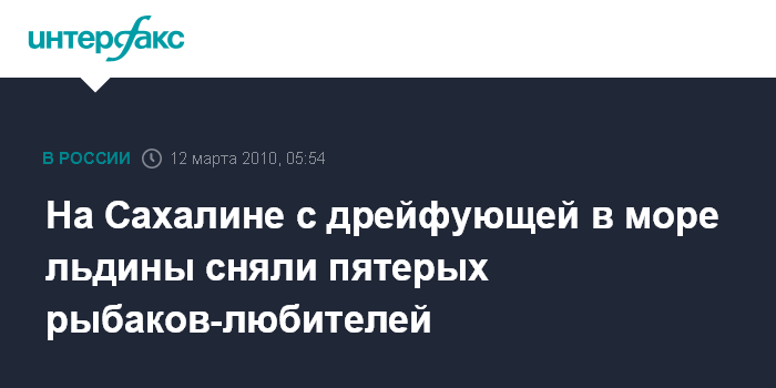 Южно-Сахалинск. 12 марта. ИНТЕРФАКС - ДАЛЬНИЙ ВОСТОК - В заливе Мордвинова (юго-восточное побережье Сахалина - ИФ) завершилась спасательная операция по снятию с дрейфующей льдины пятерых рыбаков-любителей.