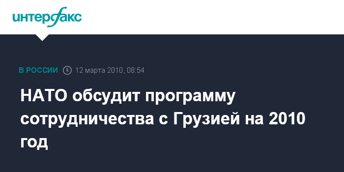 Москва. 12 марта. INTERFAX.RU - Ежегодную национальную программу Грузии по сотрудничеству с НАТО на 2010 год обсудят в пятницу в Брюсселе в штаб-квартире альянса, где в рамках комиссии Грузия-НАТО состоится заседание Совета Северо-атлантического блока.