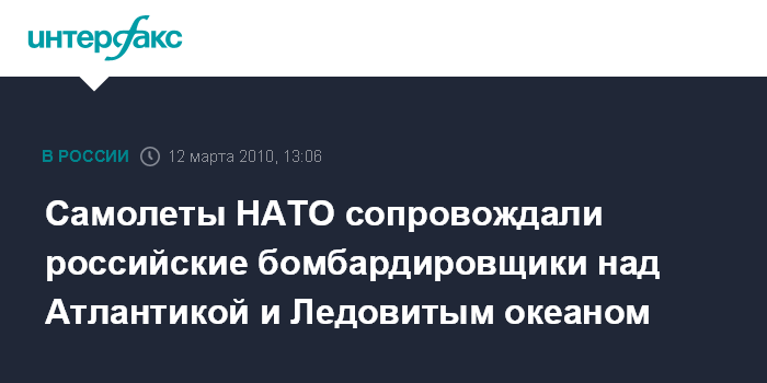 Москва. 12 марта. INTERFAX.RU - Пара российских стратегических бомбардировщиков Ту-160 в ходе воздушного патрулирования над Северным Ледовитым и Атлантическим океанами сопровождались четырьмя истребителями НАТО. "На маршруте полета российские бомбардировщики сопровождались двумя самолетами F-16 Норвегии и двумя самолетами "Торнадо" Великобритании", - сообщил "Интерфаксу-АВН" в пятницу пресс-секретарь управления пресс-службы и информации Минобороны РФ по ВВС подполковник Владимир Дрик. По его словам, два экипажа сверхзвуковых стратегических бомбардировщиков Ту-160 успешно выполнили задачи по плану воздушного патрулирования. Маршрут полета проходил над нейтральными водами в акваториях Северного Ледовитого и Атлантического океанов. Продолжительность полета составила около 11 часов.