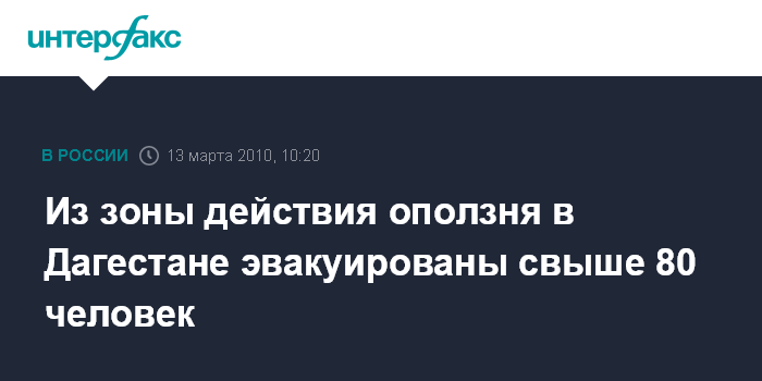 Москва. 13 марта. INTERFAX.RU - В районе Беловецкой горки в Дагестане, где в ночь на субботу активизировался мощный оползень, спасатели эвакуировали 82 человека, в том числе 26 детей, сообщили агентству "Интерфакс-Юг" в пресс-службе Главного управления МЧС по республике.