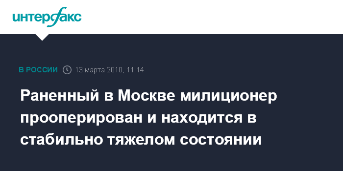Москва. 13 марта. INTERFAX.RU - Врачи борются за жизнь милиционера, раненного в результате нападения в Москве.