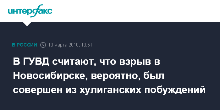 В ГУВД считают, что взрыв в Новосибирске, вероятно, был совершен из хулиганских побуждений