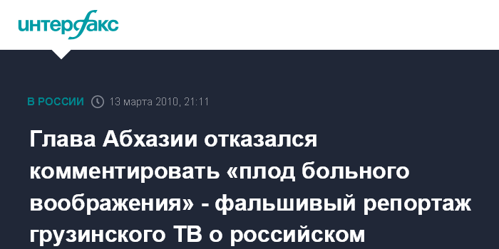 Сухуми. 13 марта. ИНТЕРФАКС - Президент Абхазии Сергей Багапш называет "плодом больного воображения" сообщение одного из грузинских телеканалов о вторжении российских войск как возможном сценарии развития ситуации.