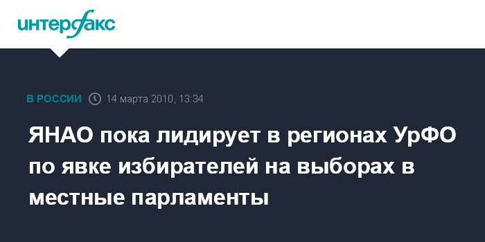 Екатеринбург. 14 марта. INTERFAX.RU - В Ямало-Ненецком автономном округе на 12:00 часов по московскому времени на выборах в окружную Думу пятого созыва проголосовали более 33,48% избирателей, сообщает избирком ЯНАО. Отмечается, что на тот же час на выборах депутатов четвертого созыва в 2005 году была зарегистрирована явка около 23%.