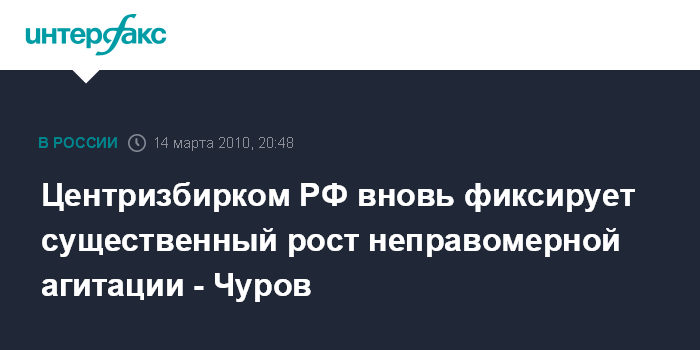 Москва. 14 марта. ИНТЕРФАКС - Председатель ЦИК РФ Владимир Чуров обеспокоен тем, что в России заметно повысился уровень незаконной агитации.