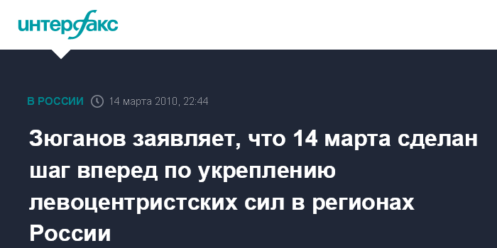 Зюганов заявляет, что 14 марта сделан шаг вперед по укреплению левоцентристских сил в регионах России