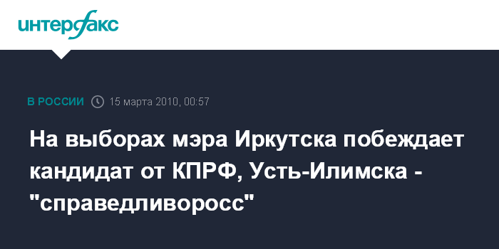 На выборах мэра Иркутска побеждает кандидат от КПРФ, Усть-Илимска - "справедливоросс"