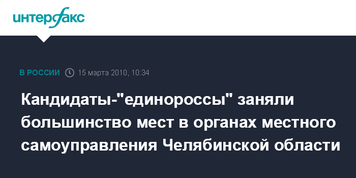 Москва. 15 марта. INTERFAX.RU - Кандидаты от партии "Единая Россия", по предварительным данным, набрали наибольшее число голосов на прошедших 14 марта выборах в органы местного самоуправления Челябинской области.