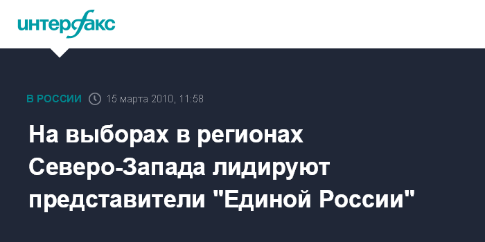 Москва. 15 марта. INTERFAX.RU - В регионах Северо-Западного федерального округа по итогам муниципальных выборов и довыборов в региональные парламенты лидируют кандидаты от политической партии "Единая Россия".