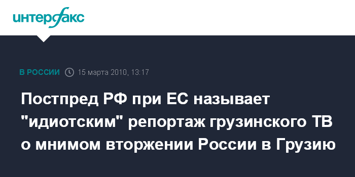 Постпред РФ при ЕС называет "идиотским" репортаж грузинского ТВ о мнимом вторжении России в Грузию
