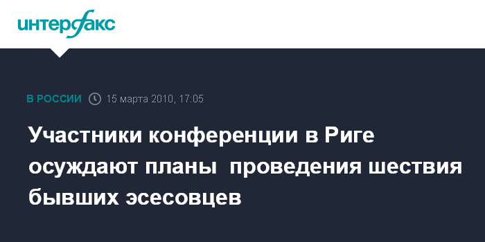 Москва. 15 марта. INTERFAX.RU - Латвийский депутат, президент "Балтийского форума" Янис Урбанович подверг критике планы неонацистов провести во вторник в Риге шествие, приуроченное ко дню памяти ветеранов "Ваффен СС", сообщает пресс-служба Всемирного конгресса русскоязычного еврейства (ВКРЕ). "Множество вопросов нашей истории нуждается в прояснении, но рецидивы прошлого выходят на улицу и мешают нам жить в мире и согласии", -сказал Я.Урбанович, выступая в понедельник в Риге на открытии международной научной конференции "Итоги Второй мировой войны: жертвы, праведники, освободители и палачи".