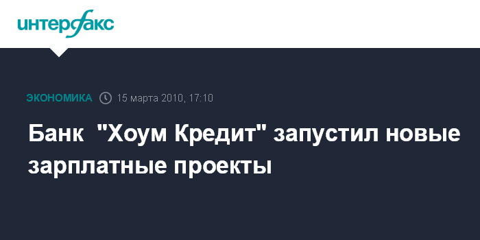 Банк "Хоум Кредит" запустил новые зарплатные проекты