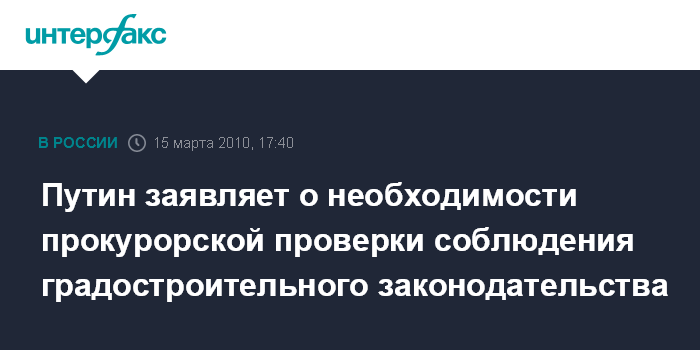 Путин заявляет о необходимости прокурорской проверки соблюдения градостроительного законодательства