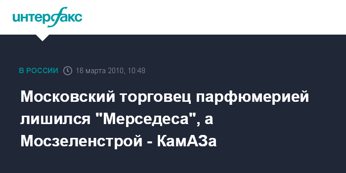 Московский торговец парфюмерией лишился "Мерседеса", а Мосзеленстрой - КамАЗа