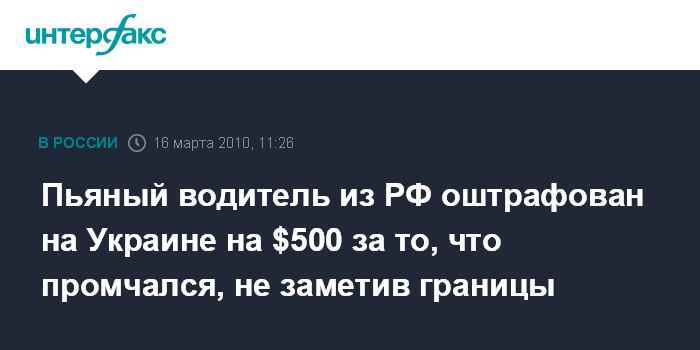 Пьяный водитель из РФ оштрафован на Украине на $500 за то, что промчался, не заметив границы