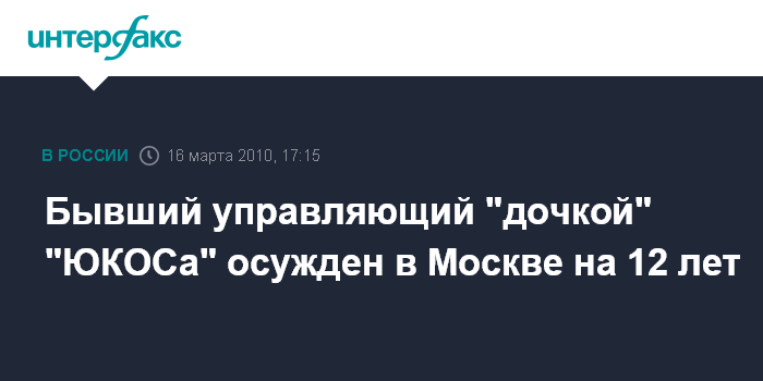 Бывший управляющий "дочкой" "ЮКОСа" осужден в Москве на 12 лет
