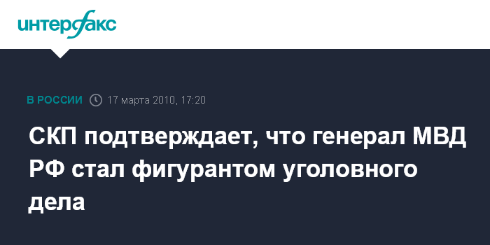 Москва. 17 марта. INTERFAX.RU - СКП РФ подтвердил факт возбуждения уголовного дела в отношении высокопоставленного сотрудника МВД России.