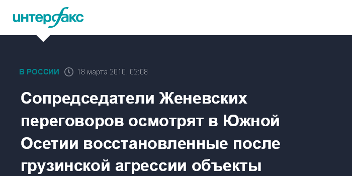 Сопредседатели Женевских переговоров осмотрят в Южной Осетии восстановленные после грузинской агрессии объекты