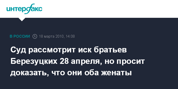 Суд рассмотрит иск братьев Березуцких 28 апреля, но просит доказать, что они оба женаты