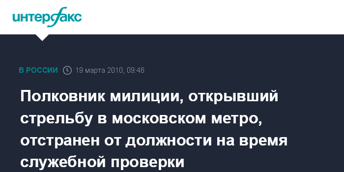 Полковник милиции, открывший стрельбу в московском метро, отстранен от должности на время служебной проверки