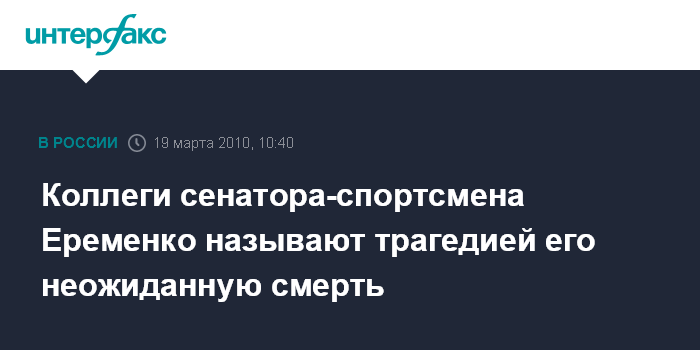 Москва. 19 марта. INTERFAX.RU - В Совете Федерации соболезнуют в связи со скоропостижной кончиной 39-летнего сенатора Константина Еременко, бывшего спортсмена, который считался "королем российского мини-футбола".