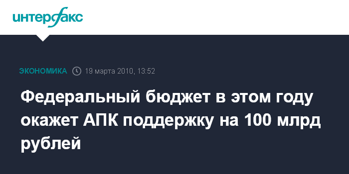 Федеральный бюджет в этом году окажет АПК поддержку на 100 млрд рублей