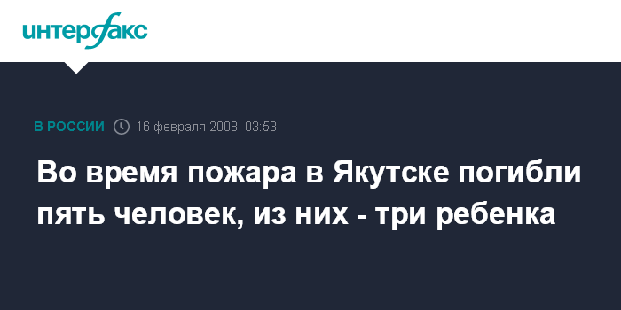 Якутск. 16 февраля. INTERFAX.RU - В Якутске вечером в пятницу при пожаре в жилом доме погибли пять человек, сообщает территориальное управление МЧС в субботу.