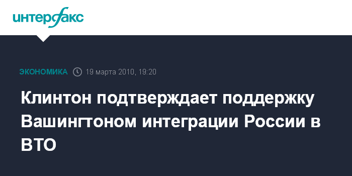 Клинтон подтверждает поддержку Вашингтоном интеграции России в ВТО