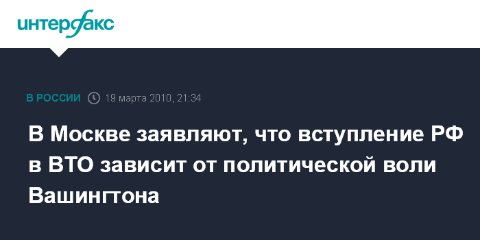 В Москве заявляют, что вступление РФ в ВТО зависит от политической воли Вашингтона