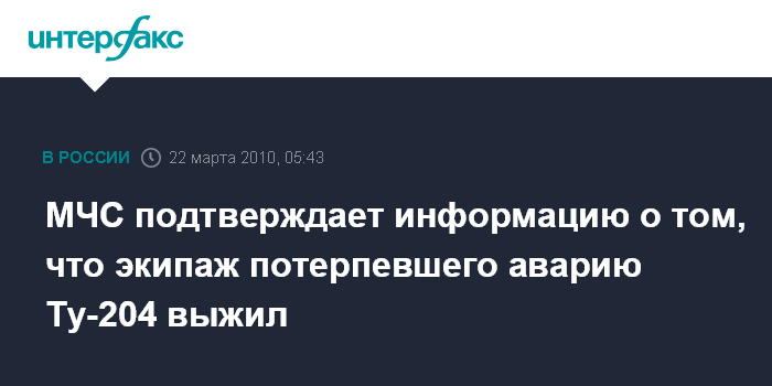 МЧС подтверждает информацию о том, что экипаж потерпевшего аварию Ту-204 выжил