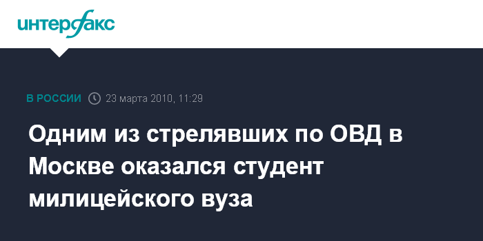 Москва. 23 марта. INTERFAX.RU - Одним из стрелявших прошедшей ночью по контрольно-пропускному пункту (КПП) ОВД "Бибирево" был студент пятого курса Академии экономической безопасности МВД России, сообщает московское следственное управление СКП РФ. "Следственный отдел по Бутырскому району Москвы по данному факту проводит доследственную проверку", - сказал во вторник "Интерфаксу" официальный представитель московского следственного управления СКП РФ Сергей Марченко.