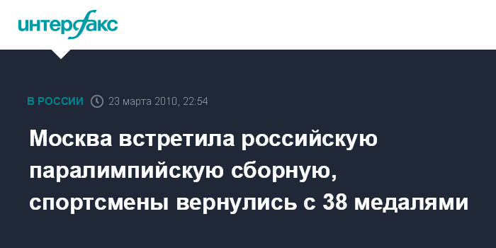 Москва. 23 марта. ИНТЕРФАКС – Паралимпийская сборная Россия во вторник вечером вернулась из Ванкувера в Москву. В аэропорту Домодедово паралимпийцев ждали несколько десятков человек и оркестр.