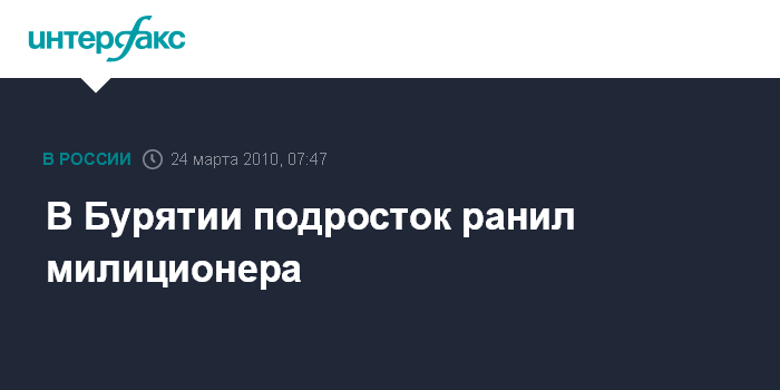 Чита. 24 марта. ИНТЕРФАКС-СИБИРЬ - В Бурятии возбуждено уголовное дело в отношении 17-летнего жителя города Северобайкальск, ранившего ножом милиционера.