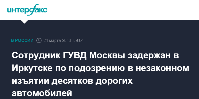 Сотрудник ГУВД Москвы задержан в Иркутске по подозрению в незаконном изъятии десятков дорогих автомобилей