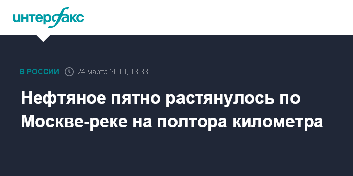 Москва. 24 марта. INTERFAX.RU - Городские службы выясняют причину появления большого нефтяного пятна на Москве-реке в районе Андреевской набережной, сообщил "Интерфаксу" источник в городской администрации в среду. Собеседник агентства отметил, что площадь пятна составляет 1,5 км на 10 метров.