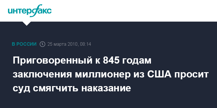 Приговоренный к 845 годам заключения миллионер из США просит суд смягчить наказание