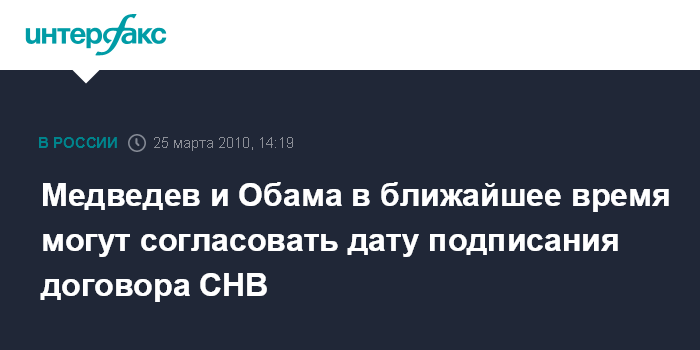 Медведев и Обама в ближайшее время могут согласовать дату подписания договора СНВ