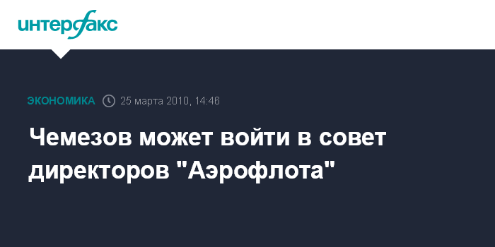 Москва. 25 марта. INTERFAX.RU - Гендиректор "Ростехнологий" Сергей Чемезов может войти в состав совета директоров ОАО "Аэрофлот", сообщил журналистам директор департамента Минэкономразвития Алексей Уваров. Он подтвердил, что "Ростехнологии", которые не получат доли в "Аэрофлоте" в рамках передачи компании своих авиаактивов, тем не менее получат право выдвинуть своего представителя в совет директоров "Аэрофлота" - даже несмотря на то, что в подписанном премьер-министром РФ списке кандидатов в совет директоров "Аэрофлота" "Ростехнологий" нет.