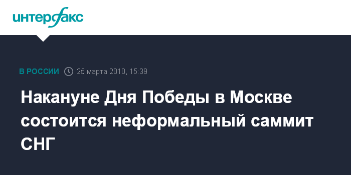 Накануне Дня Победы в Москве состоится неформальный саммит СНГ