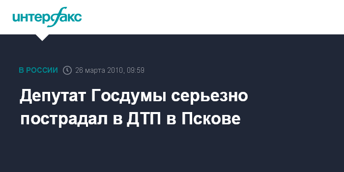 Депутат Госдумы серьезно пострадал в ДТП в Пскове